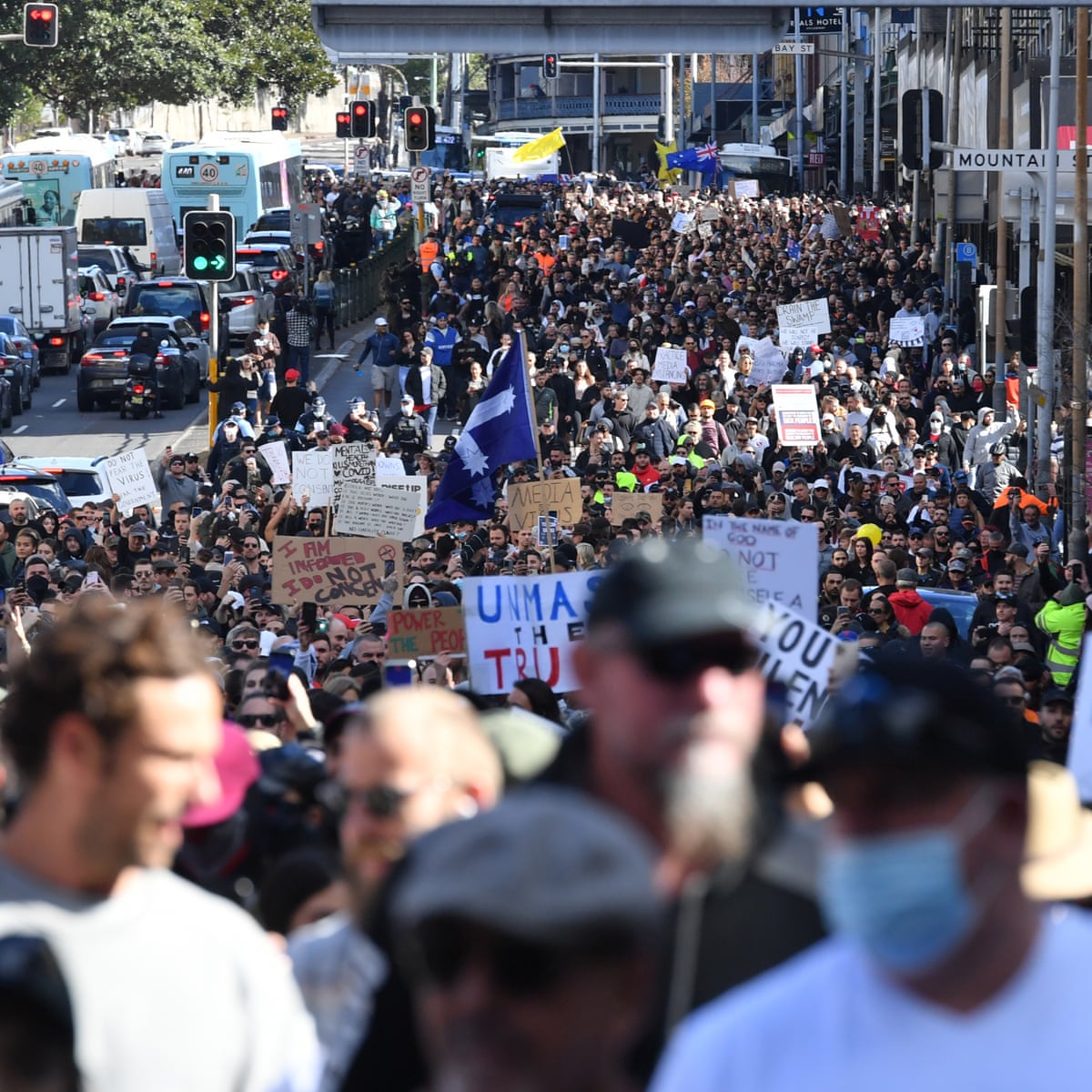 Police shut parts. Australian politicians have condemned protests against coronavirus restrictions amid a rise in cases. The organisation of an anti-lockdown protest that turned violent in Sydney on Saturday began in fringe online communities teeming with COVID-19 conspiracy theories anti-Semitism and debunked.